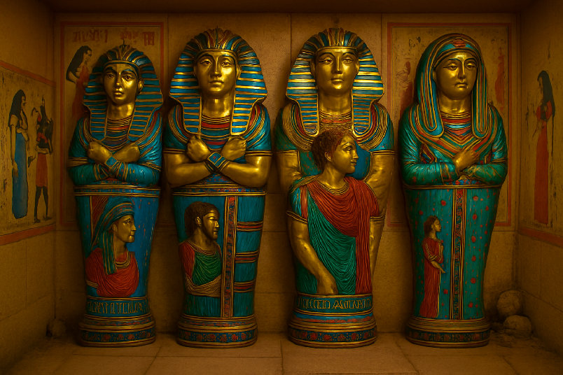1)Mark Anthony and Cleopatra committed suicide in Alexandria but their tombs and of Alexander/Roxanne where never found.